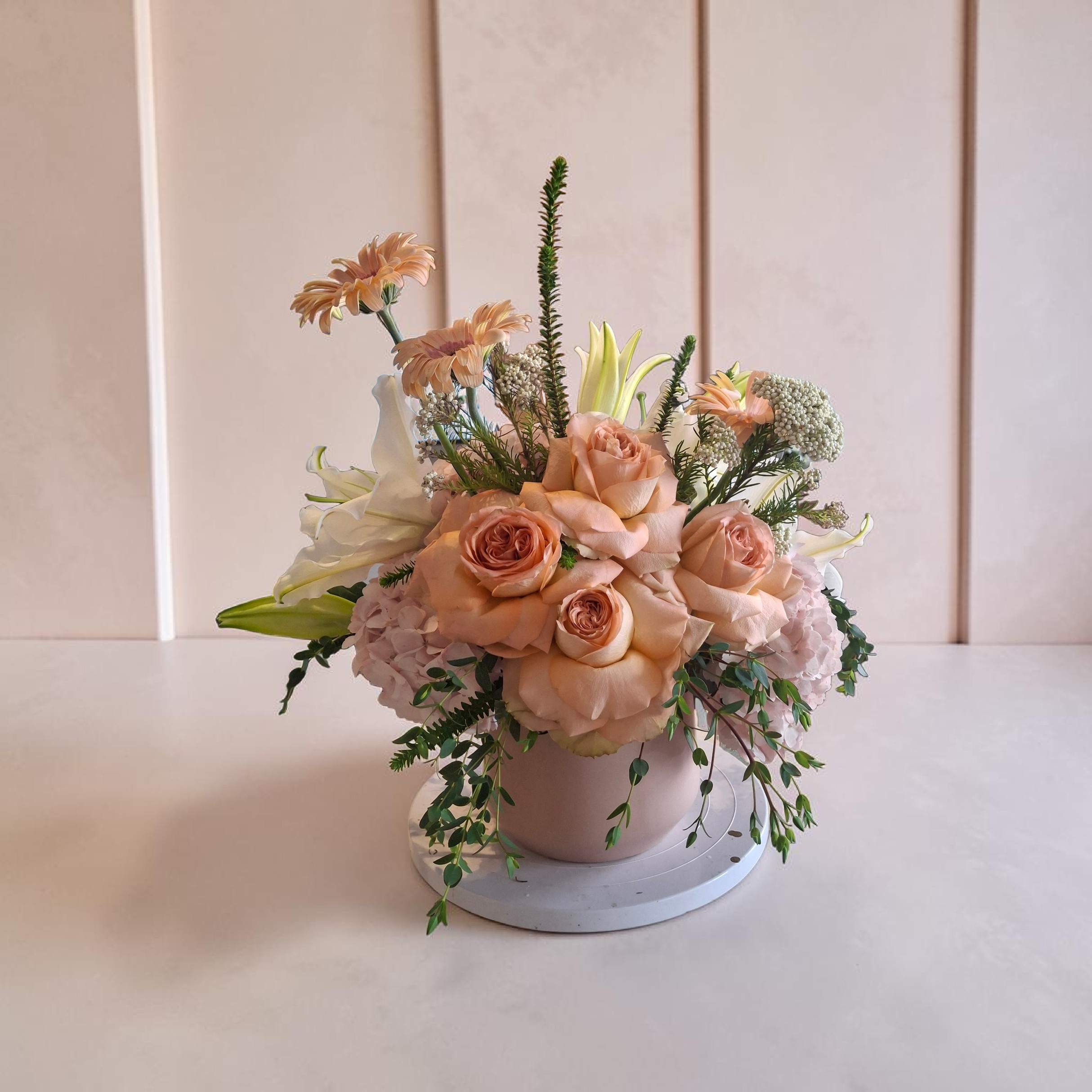 Mom deserves something beautiful and sweet, get her an arrangement with Rose Lilies, Hydrangea, Roses, Gerberas and fillers in a ceramic vase.